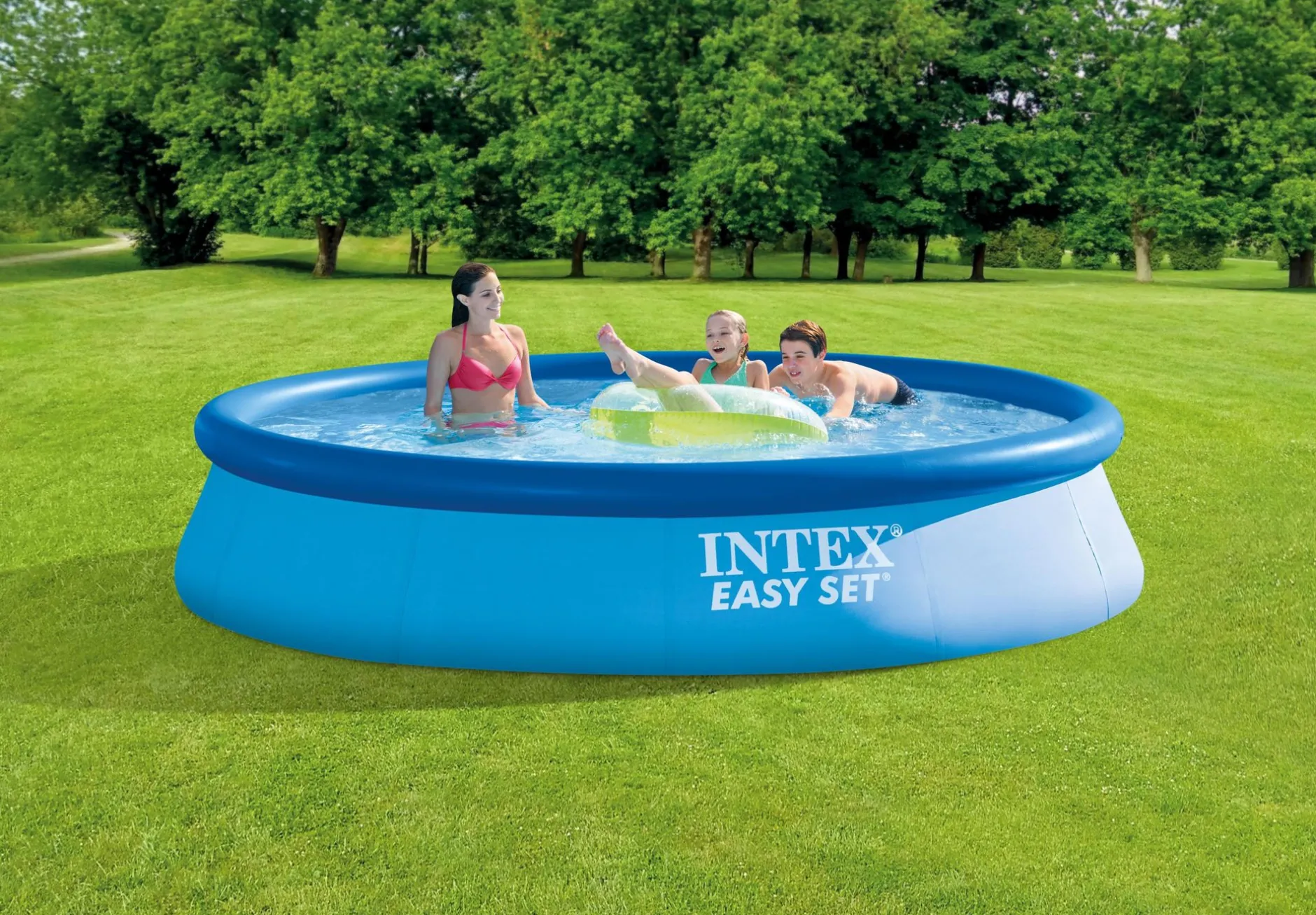 Het zwembad is binnen enkele minuten vulklaar. Blaas met een pompje de opblaasrand op en het zwembad is gereed om te vullen.