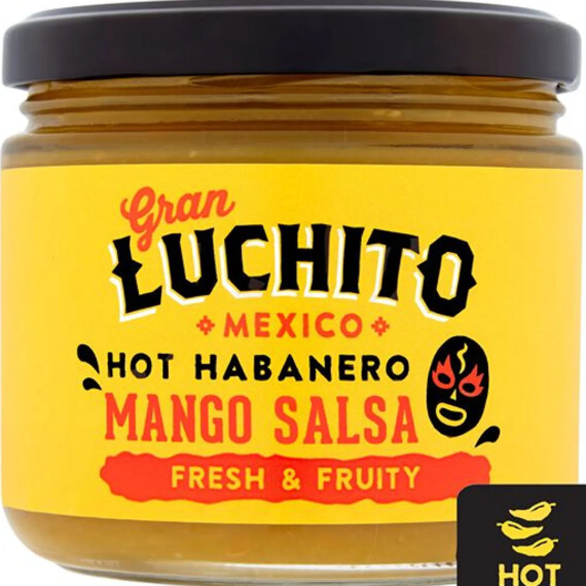 Tomatillo, Mango, Ui, Azijn, Water, Habanero, Knoflook, Zout, Koriander, Maïszetmeel