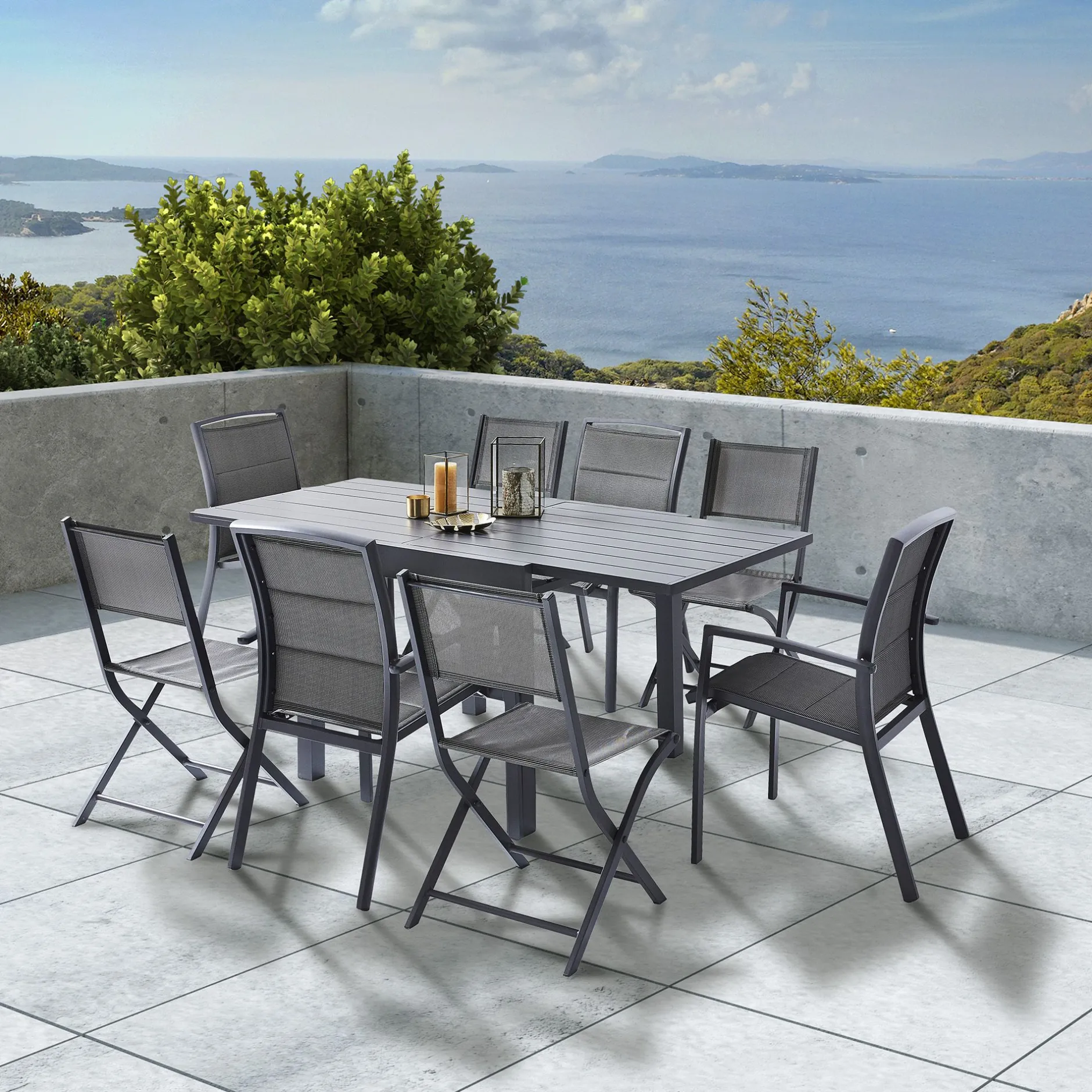De Modulo plooistoel heeft een aluminium structuur en biedt een confortabele zit. Het textileen is versterkt en weerbestendig.
