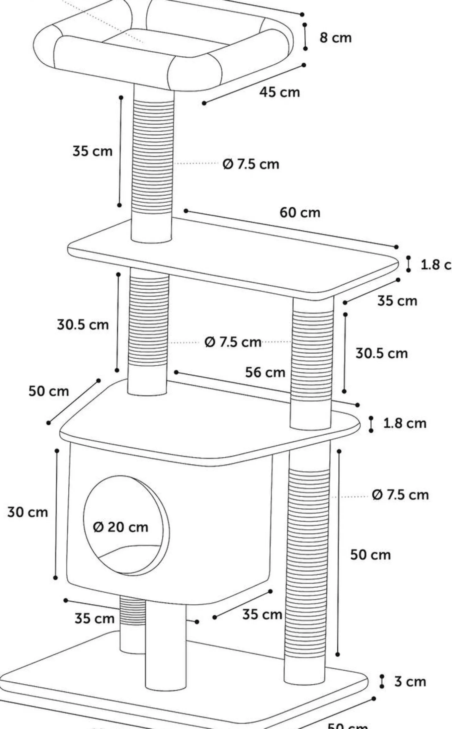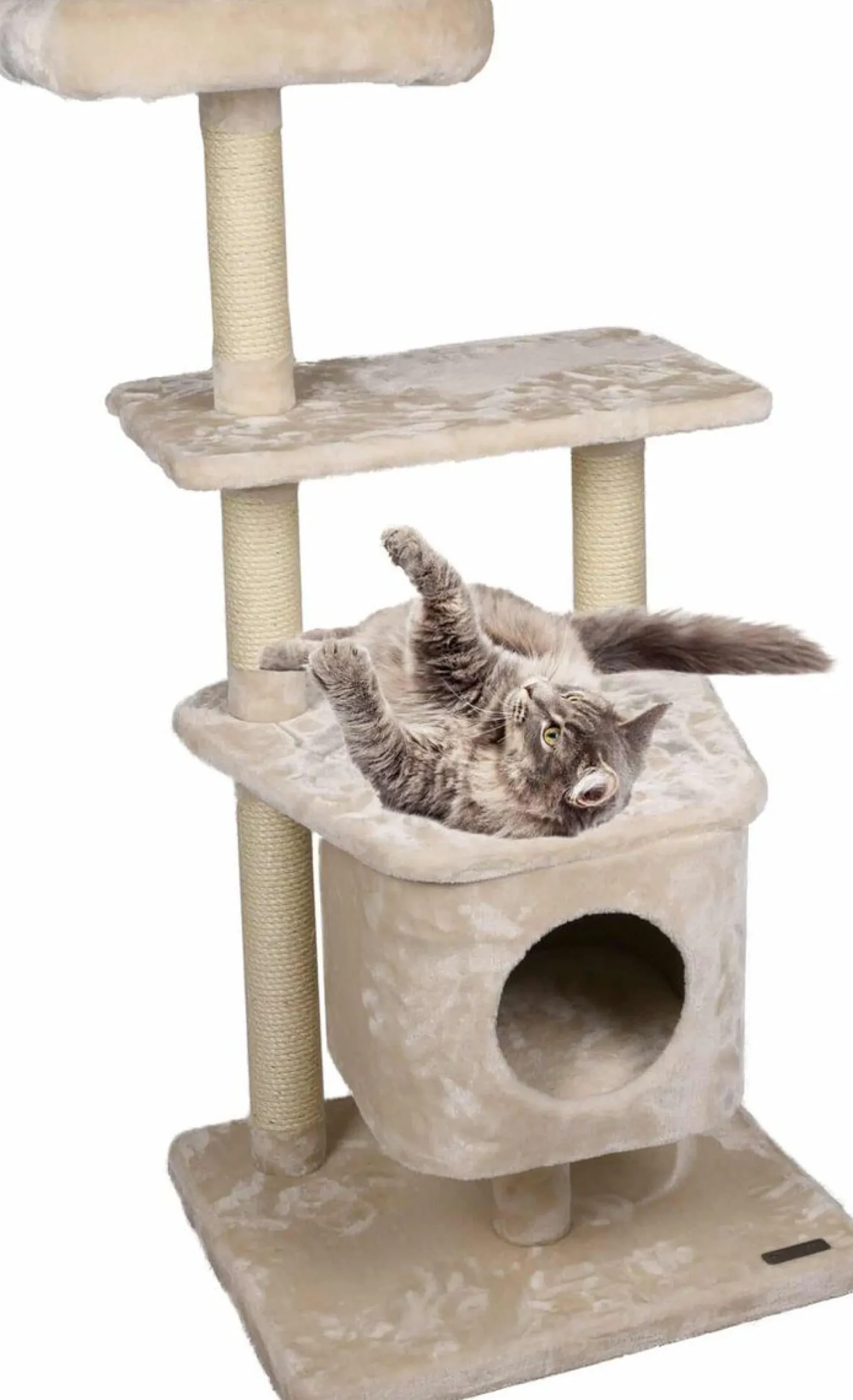 De Krabpaal Norma Beige is de perfecte plek voor jouw kat om te spelen en te ontspannen. Met meerdere plateau’s en een gezellig huisje, zal jouw kat zich nooit vervelen. De sisalpalen zijn stevig en perfect om aan te krabben. Geschikt voor kleine tot middelgrote katten.