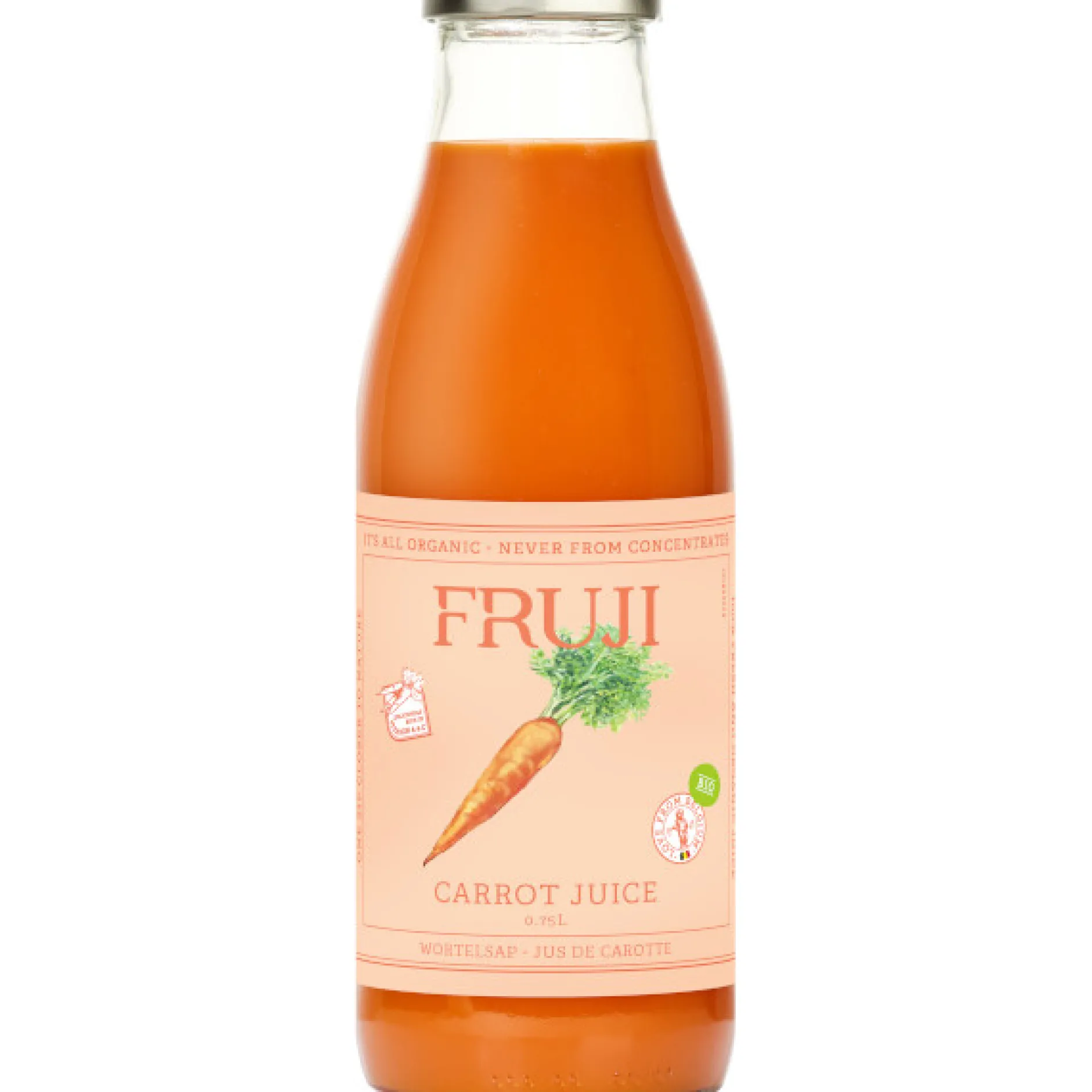 Wortelsap* 98%, citroensap* 2%, gepasteuriseerd om te zorgen voor een langere houdbaarheid. Wortelen van zaadvaste rassen. , Koel bewaren na openen. , , * van biologische teelt